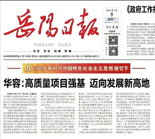 2020年,华容坚持以习近平新时代中国特色社会主义思想为引领,坚持以全面建成小康社会为引领,大力实施创新引领开放崛起战略,筑牢了赶超跨越的产业基础,一大批重大产业项目相继落地,纺织服装、食品加工、医药卫材、通用设备制造等4条新兴优势产业链基本形成。1月5日,《岳阳日报》头版头条以《华容:高质量项目强基 迈向发展新高地》,推介华容产业项目建设经验。